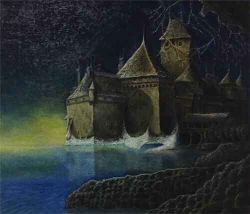 レマン湖畔に佇む 浪漫 シヨン城… 其の佇まいに主体を置き F 10号カンバスに描いてみた あの楽しかったサヴォア家の時節 古城シヨンは 未だ未だ 真新しさに 包まれていた…